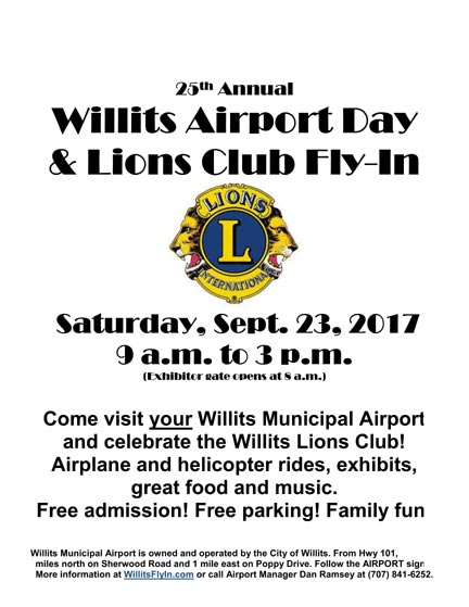 Chapter 1027 Willits, CA (Mendocino, Lake, and Humboldt Counties) Link to EAA Home Link To Willits Chamber of Commerce |